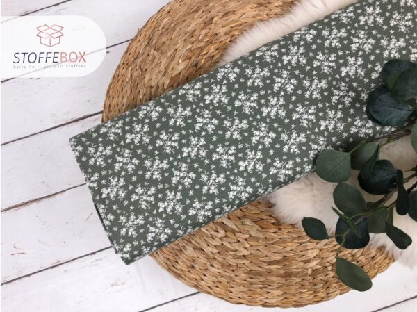 Webware / Baumwolle Öko-Tex-100 – mini Blumenranken (olivgrün)