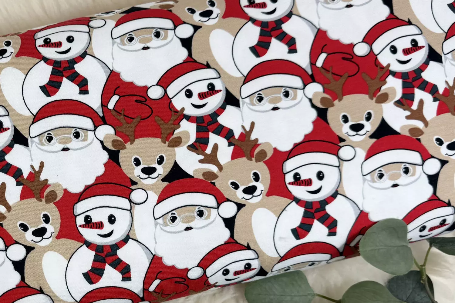Ein super weicher Sweatstoff, auch Kuschelsweat genannt, gemustert mit süssen Weihnachtsmann, Schneemann und Rentier Motiven. Ob als Kinderstoff oder für Erwachsene, verschönere die festliche Adventszeit mit zauberhaften Weihnachtsmotiven.